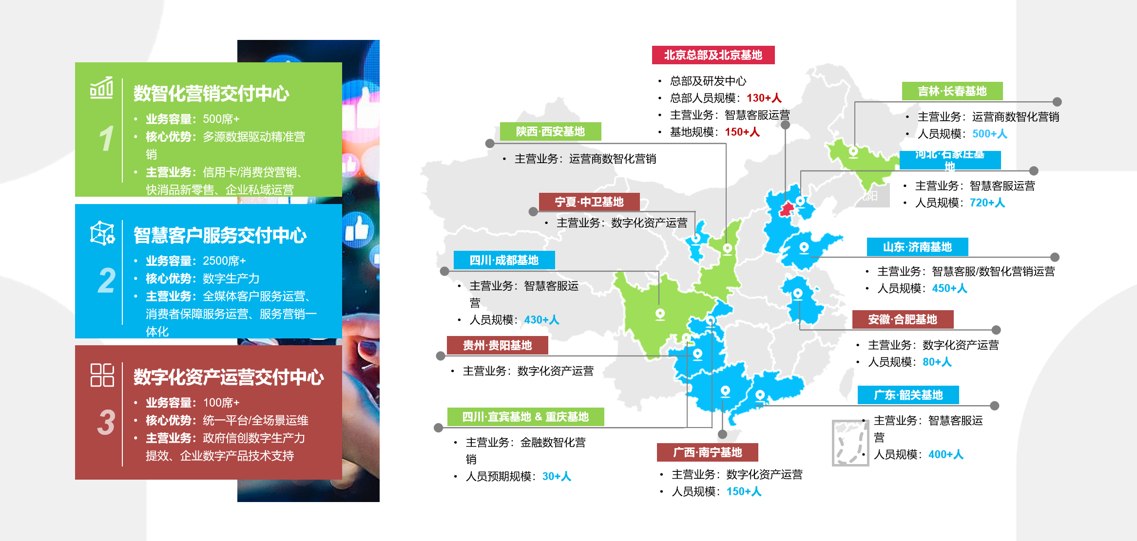 伽睿三大業務版塊在全國15個城市建立運營交付中心,服務全國31個省區市。